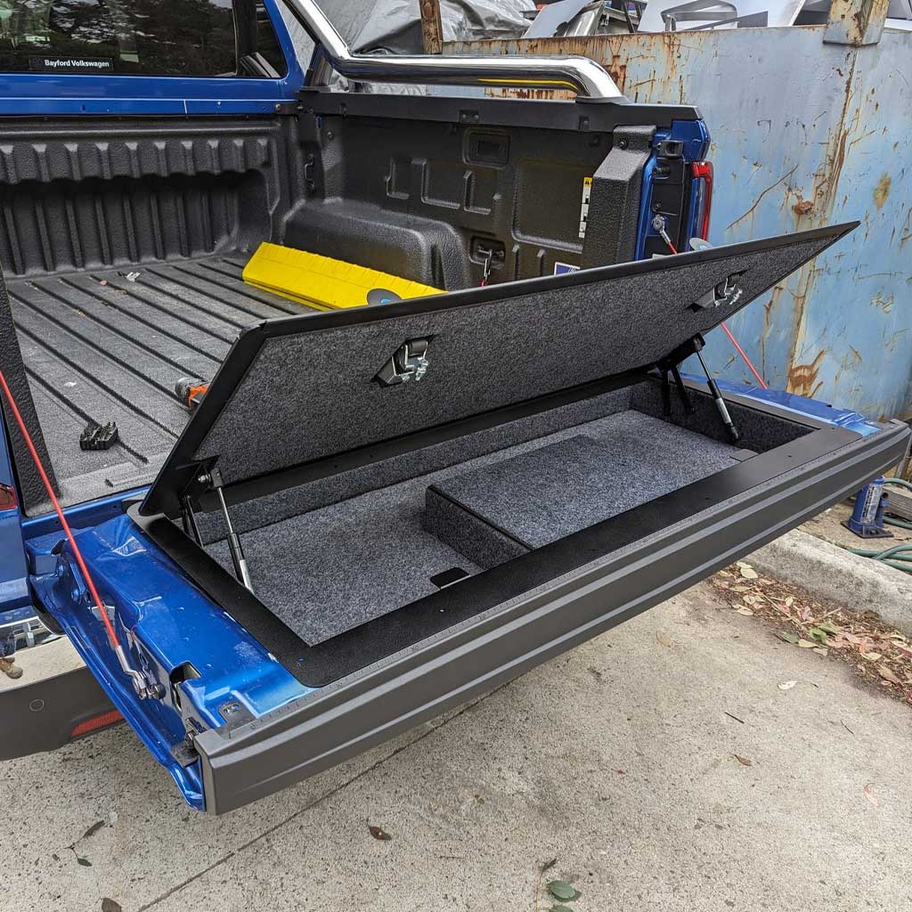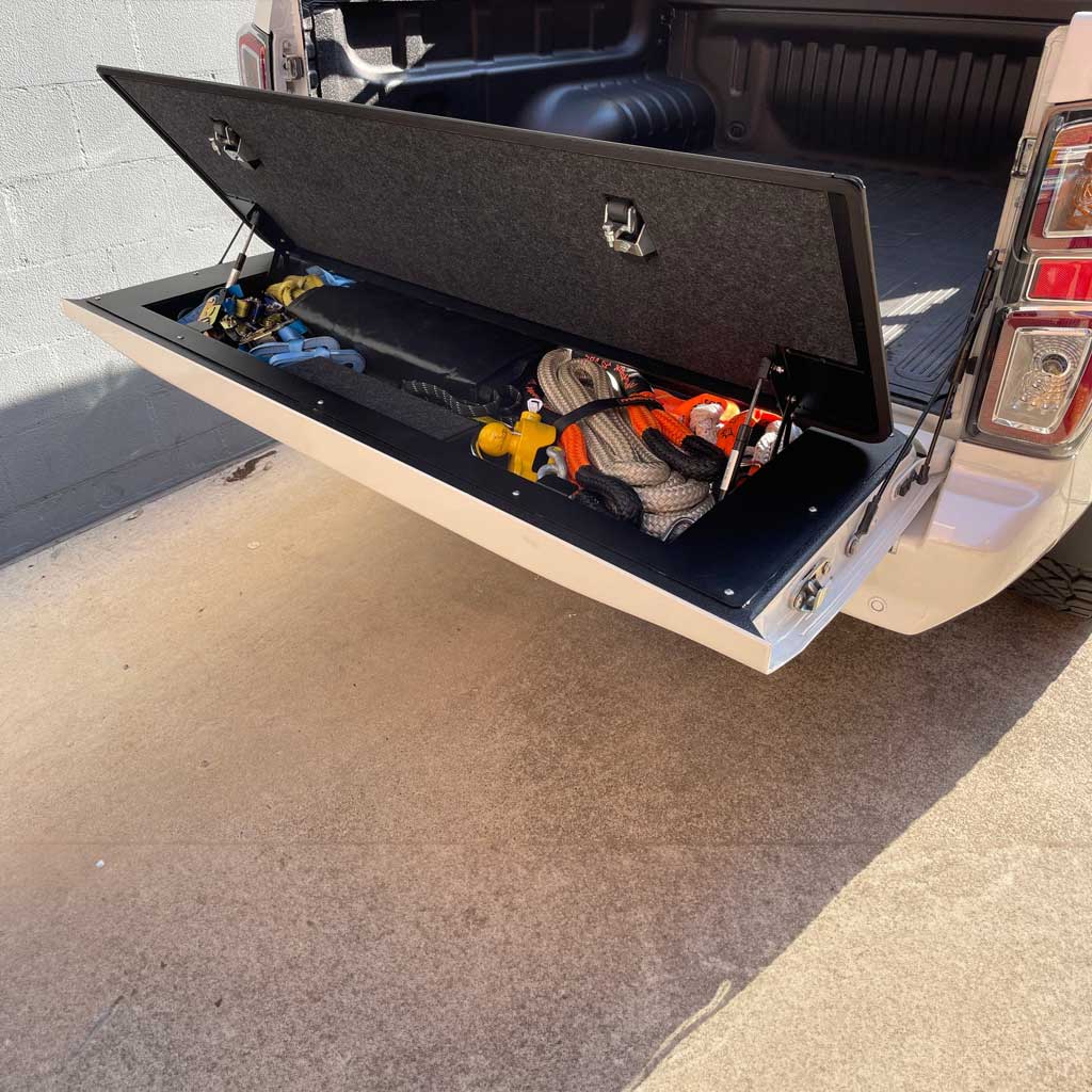 Alveg snilldarlausn sem breytir pallhleranum þínum í lokaða og læsta hirslu fyrir aukadót sem annars væri laust á pallinum. Ótrúlega vönduð smíði og mjög sterk hirsla sem þolir nánast allt, kemur með vönduðum pumpum á hlera.