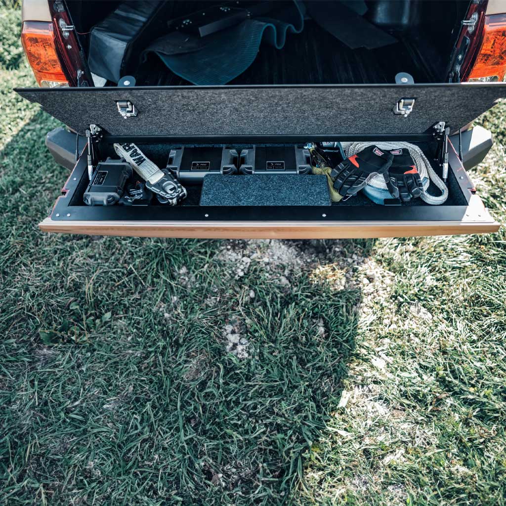 Alveg snilldarlausn sem breytir pallhleranum þínum í lokaða og læsta hirslu fyrir aukadót sem annars væri laust á pallinum. Ótrúlega vönduð smíði og mjög sterk hirsla sem þolir nánast allt.
