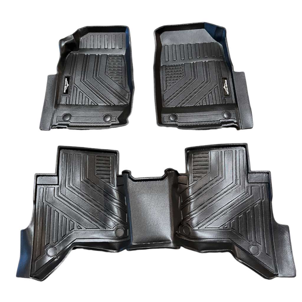 Verndaðu innanrýmið með slitsterku og sérsniðnu mottusetti sem hannað er sérstaklega fyrir Nissan Navara 2016-2020.