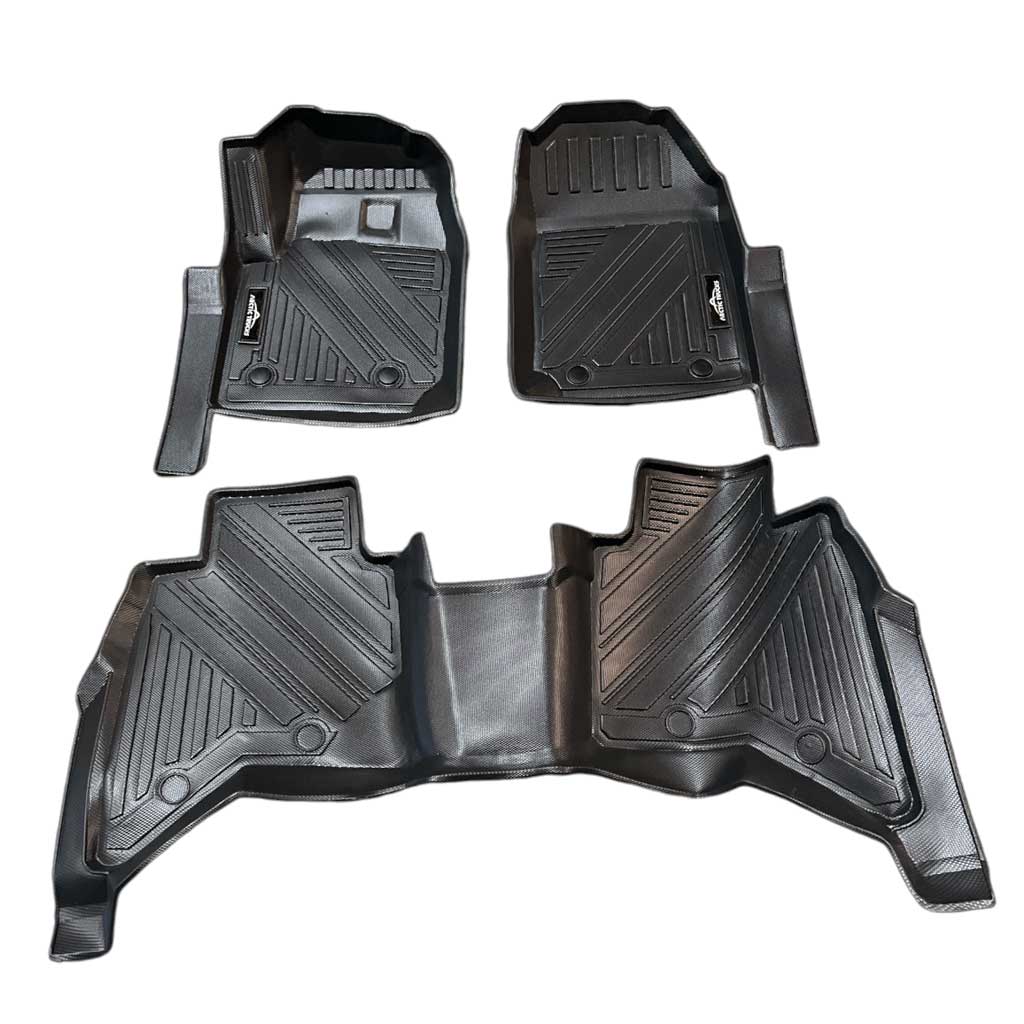 Mottusettið inniheldur mottur fyrir bæði ökumann og farþega að framan og aftan, og tryggir hámarksvörn gegn bleytu, sandi og drullu – fullkomið fyrir íslenskar aðstæður. Mottusettið smellpassar í gólf bílsins, með upphækkuðum köntum til að halda óhreinindum innan þeirra.