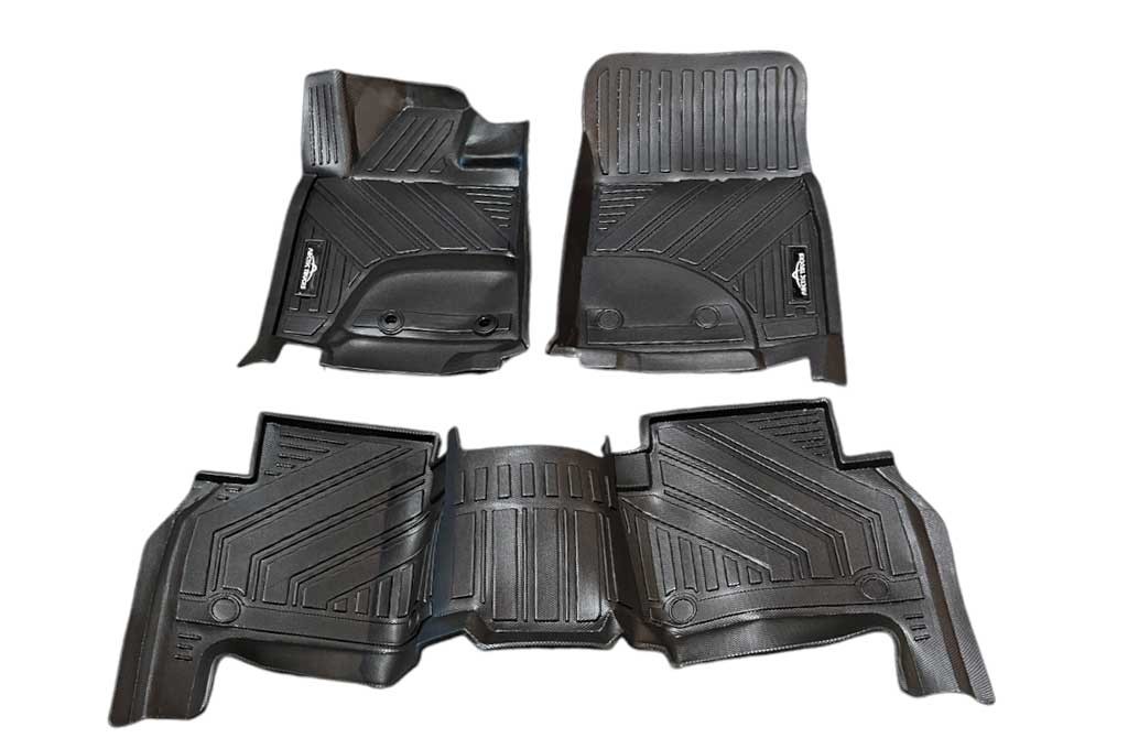 Mottusettið inniheldur mottur fyrir bæði ökumann og farþega að framan og aftan, og tryggir hámarksvörn gegn bleytu, sandi og drullu – fullkomið fyrir íslenskar aðstæður. Mottusettið smellpassar í gólf bílsins, með upphækkuðum köntum til að halda óhreinindum innan þeirra.