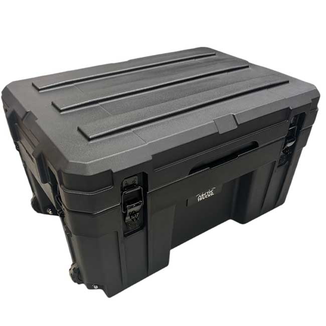 Vatnshelt 240 lítra mjög sterkbyggt geymslubox framleitt úr LLDPE skel sem kemur með 2x pumpum í loki, þéttingum fyrir vatnsheldni og læsingum gerðum fyrir hengilás ásamt hjólum og handfangi. Flatur botn sem auðveldar mjög stöflun og hentar mjög vel þegar boxin eru sett á toppgrindur eða aðra flata staði. Boxin eru með ryk-/vatnsheldri þéttingu sem tryggir að búnaðurinn þinn haldist alltaf verndaður, sama hvernig veður eða landslag er.
