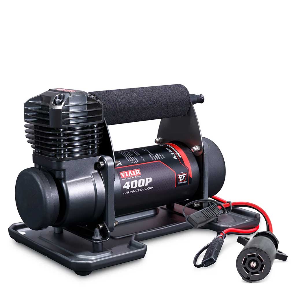 200 PSI Plug-N-Play Viair loftdælan er frábær lausn fyrir þá sem vilja hafa all in one græju tilbúna þegar á þarf að halda án þess að þurfa að festa í bílinn.Fáanleg með rafhlöðuklemmum eða 7-pinna kerrutengli til að tengja við rafmagn í ökutækinu þínu.