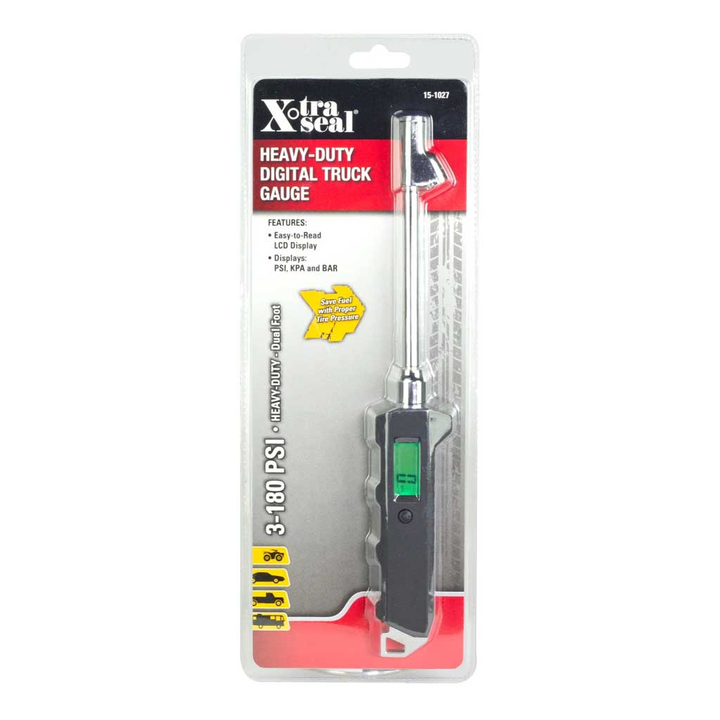 Xtra Seal Digital Dual Foot Tire Gauge er nákvæmur og auðveldur í notkun fyrir allar gerðir ökutækja, þar á meðal vörubíla, jeppa og önnur stór farartæki. Með stafrænum skjá og tvöföldu mælihaus (dual foot design) gerir hann loftmælingar þægilegar og nákvæmar, jafnvel á erfiðum stöðum.