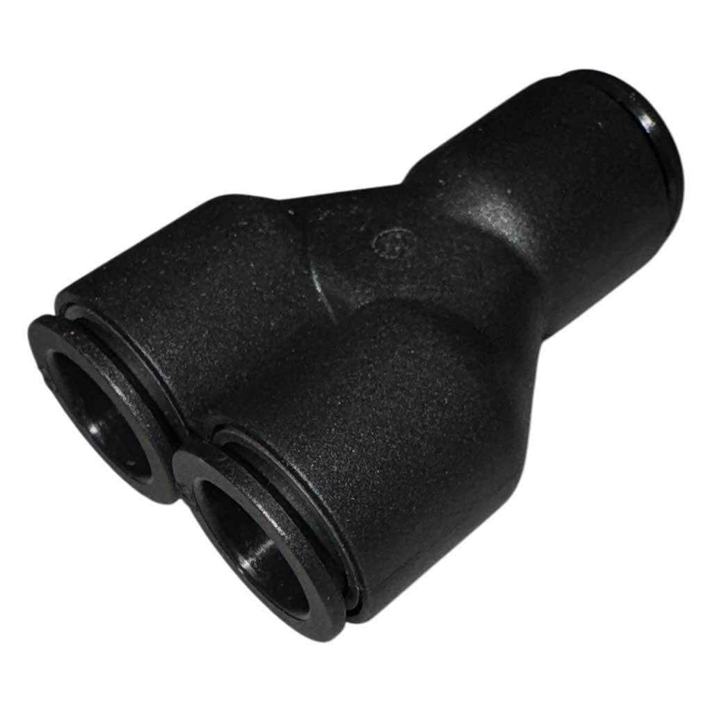Sterkbyggt plast Y-stykki fyrir 10mm slöngur, fullkomið til að tengja tvær slöngur saman í eina. Hentar vel fyrir ýmsa notkun þar sem þörf er á öruggri og loftþéttri tengingu.