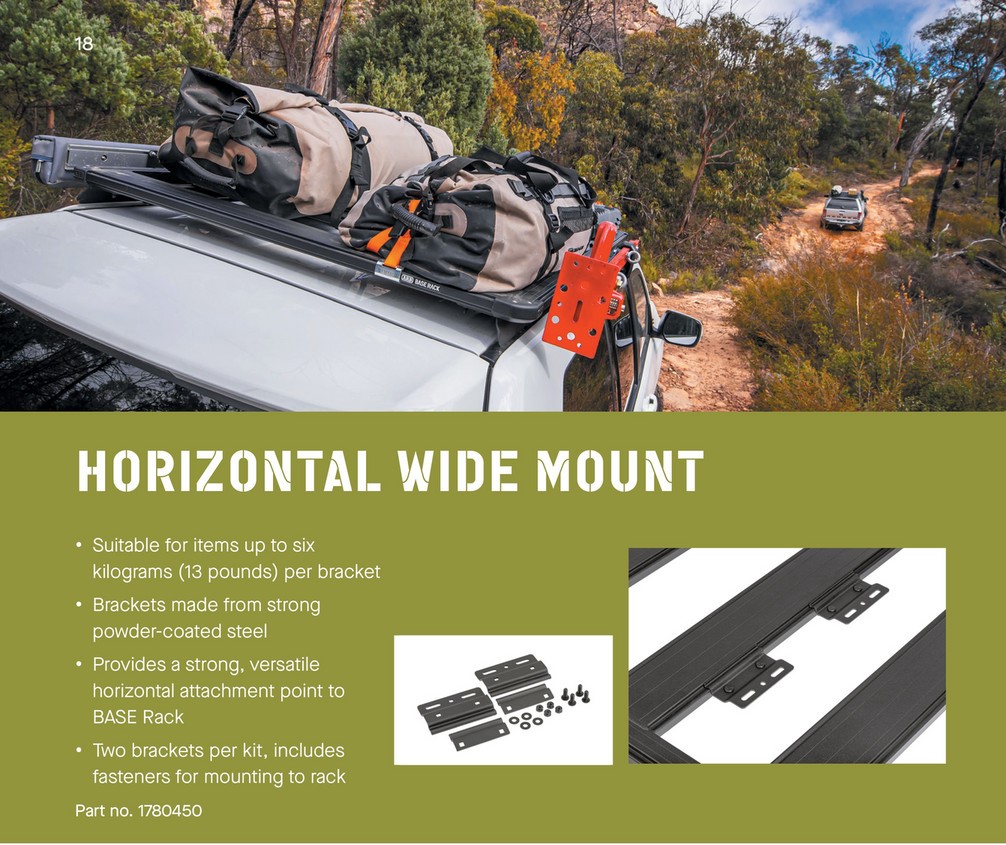 ARB Base Rack festi bracket sem fer á milli þverbitana. Hentar fyrir aukahluti eins og t.d. bensínbrúsa og ljós.