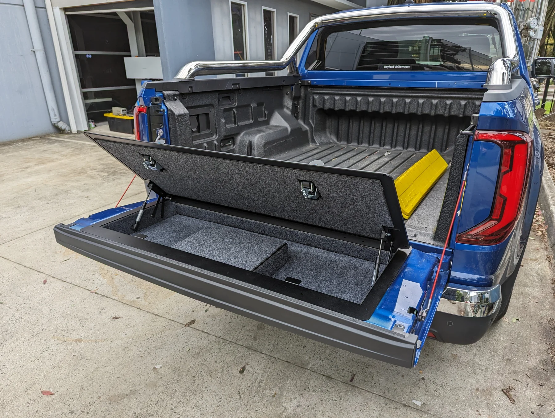 Alveg snilldarlausn sem breytir pallhleranum þínum í lokaða og læsta hirslu fyrir aukadót sem annars væri laust á pallinum. Ótrúlega vönduð smíði og mjög sterk hirsla sem þolir nánast allt, kemur með vönduðum pumpum. Hægt að fá ýmsan aukabúnað eins og t.d. ljós. Kemur með sterkum og öruggum læsingum og lömum og hentar vel fyrir íslenskar aðstæður.