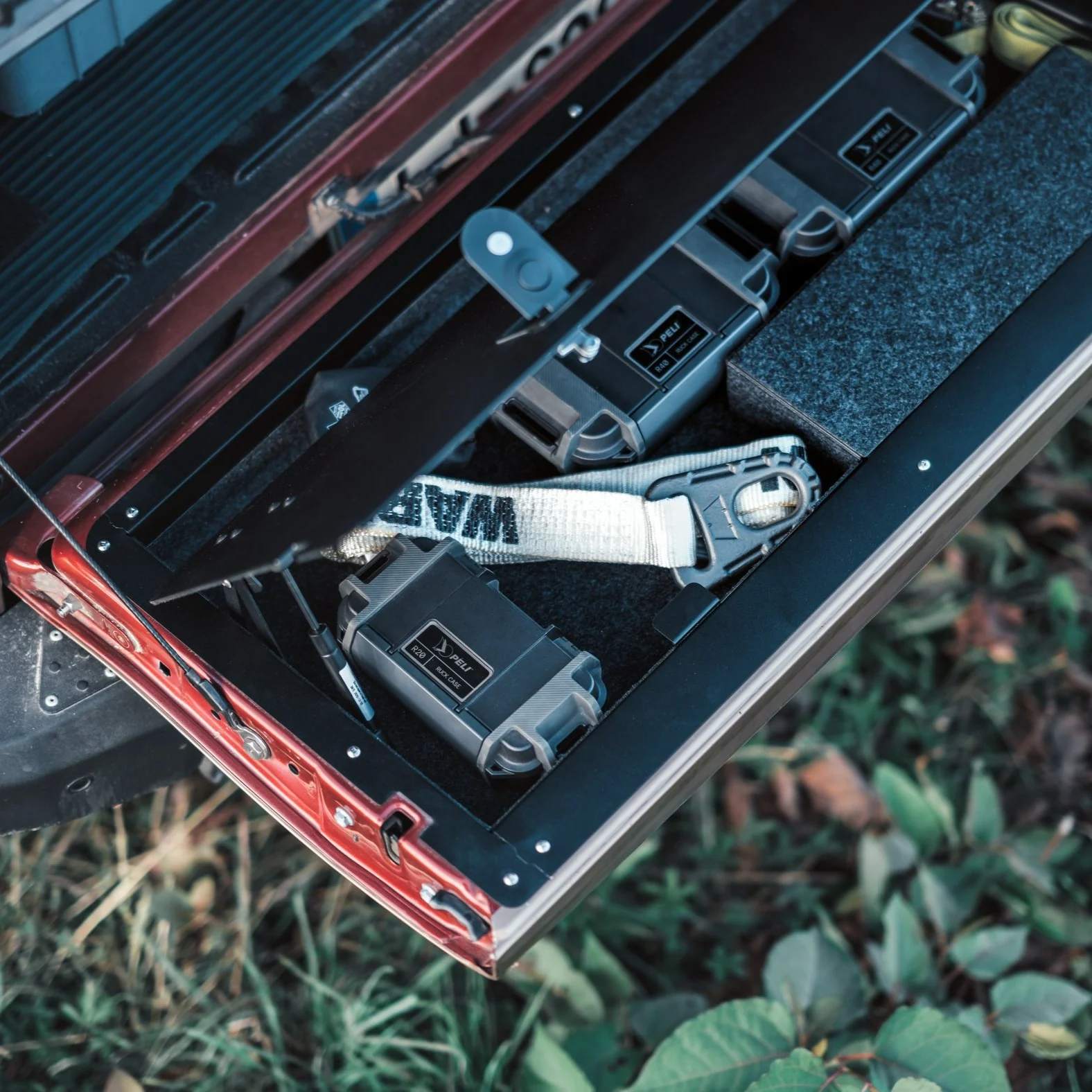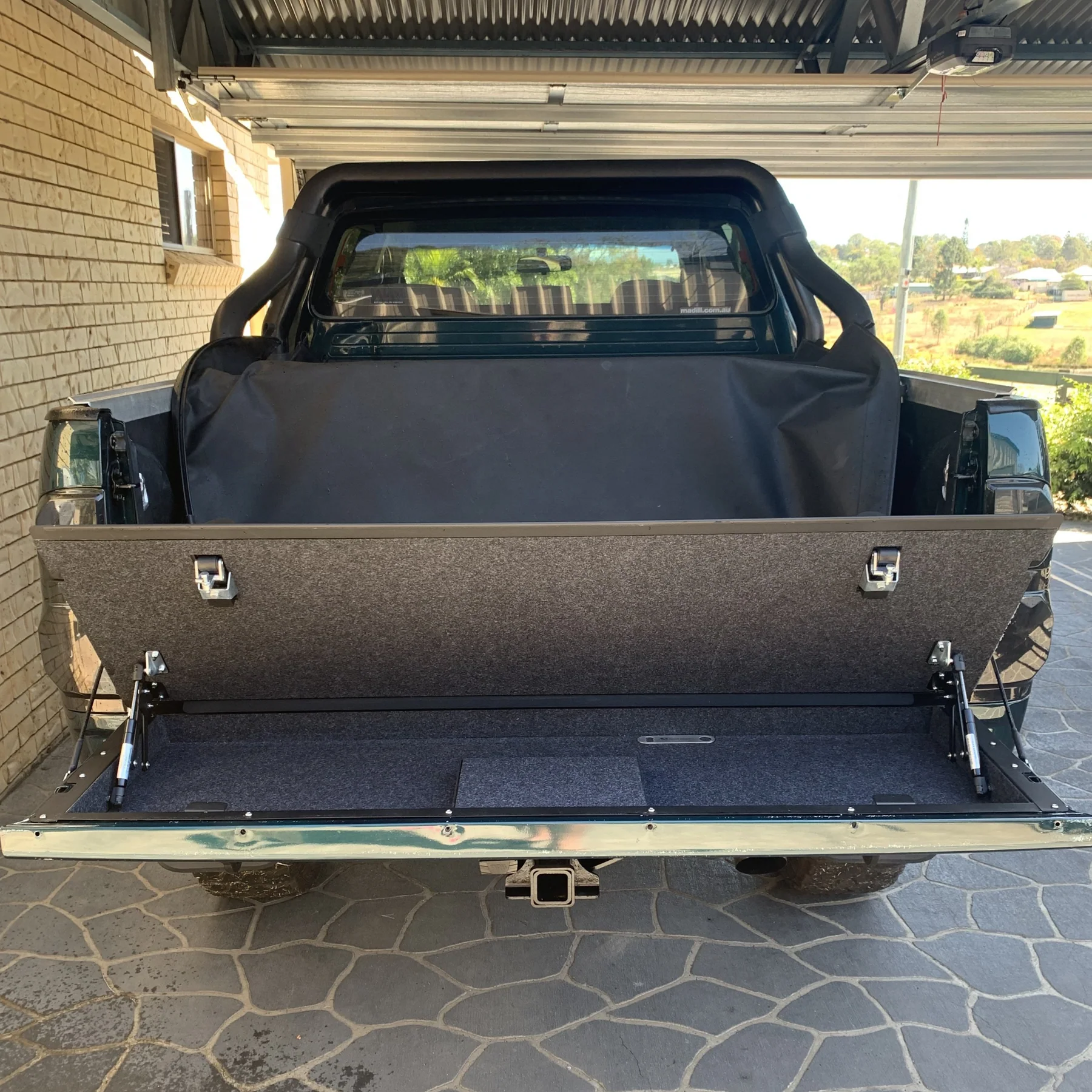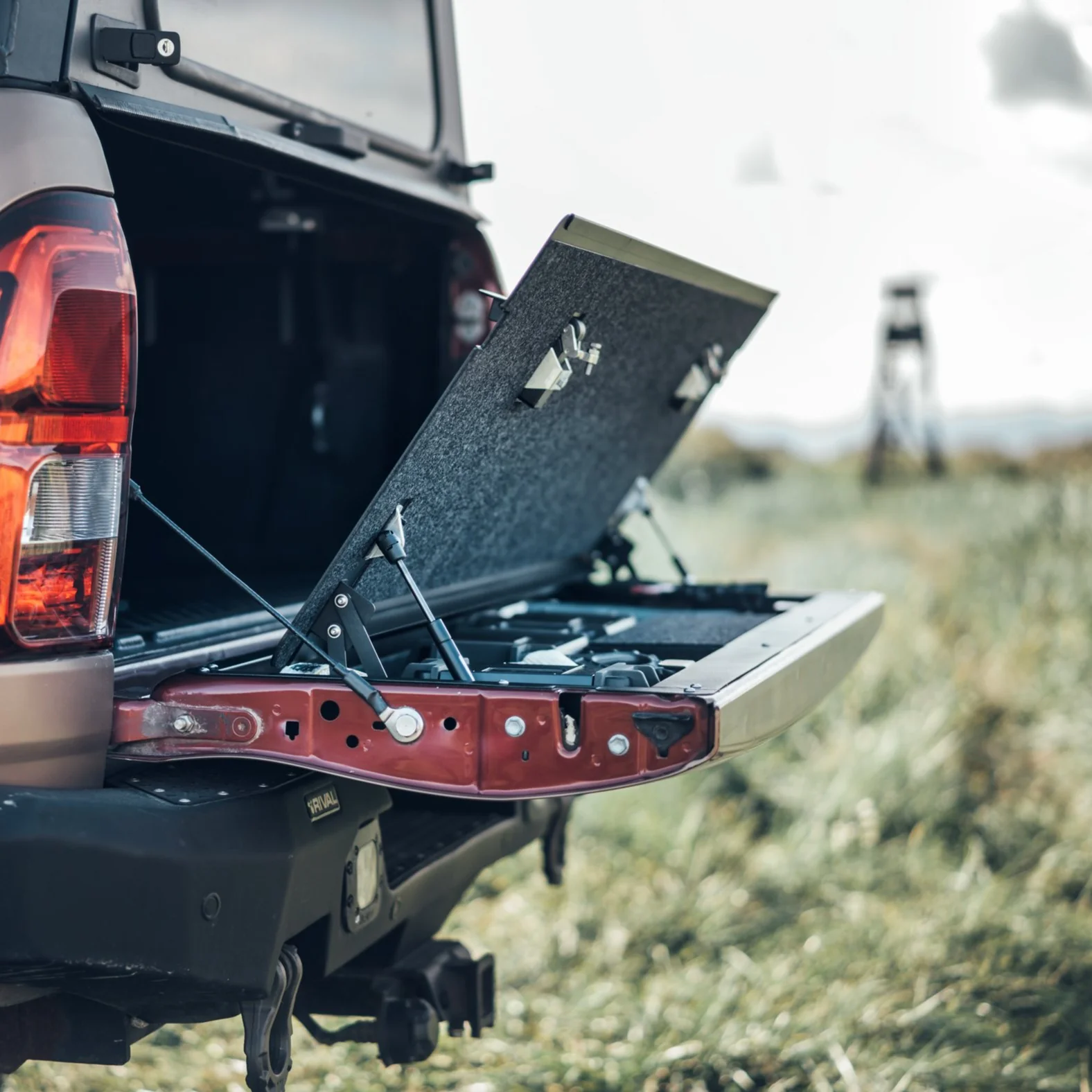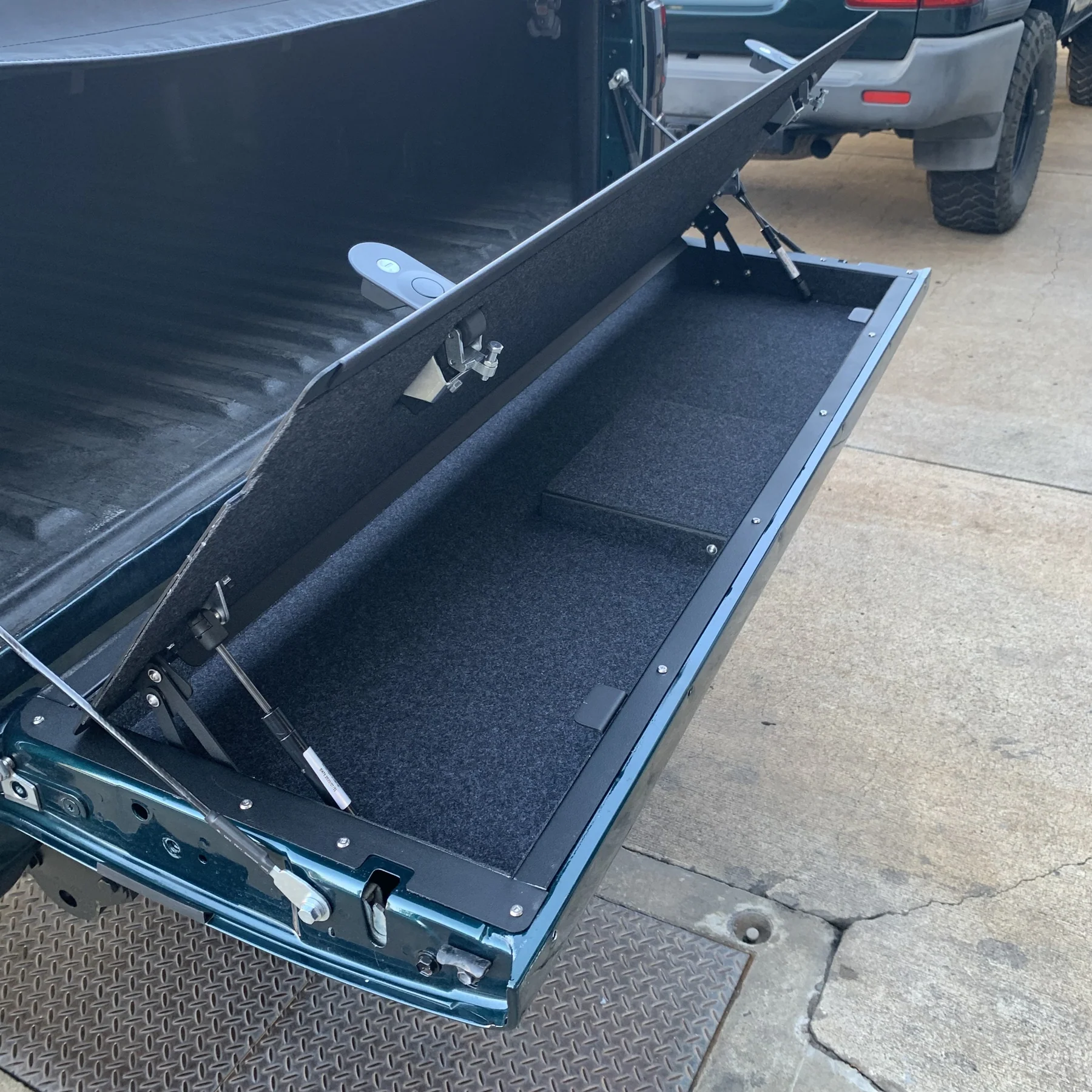 Alveg snilldarlausn sem breyti pallhleranum þínum í lokaða og læsta hirslu fyrir aukadót sem annars væri laust á pallinum. Ótrúlega vönduð smíði og mjög sterk hirsla sem þolir nánast allt, kemur með vönduðum pumpum á hlera. Hægt að fá ýmsan aukabúnað eins og t.d. ljós. Kemur með sterkum og öruggum læsingum og lömum og hentar vel fyrir íslenskar aðstæður.