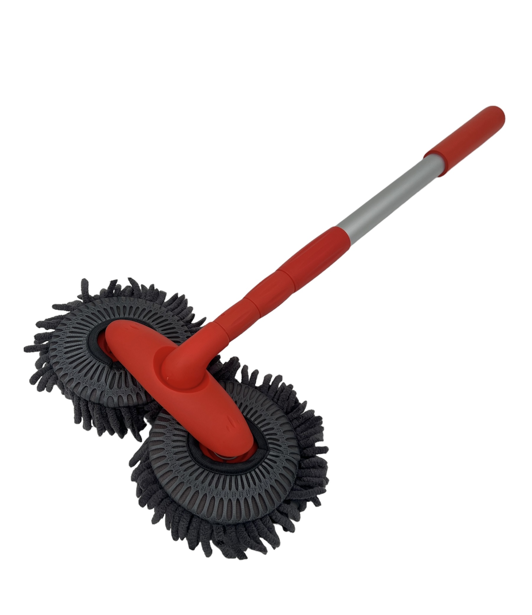 Öflugur og þægilegur lengjanlegur þvottabursti með tveimur örtrefjaburstum sem snúast 360° fyrir hámarks hreinsun. Skaptið er stillanlegt frá 0.65m – 1.35m, sem gerir hann hentugan fyrir þrif á bæði lágum og háum flötum. Hægt er að taka burstana af og hægt að setja í þvottavél til að viðhalda hreinlæti og endingu. Fullkominn fyrir bíla, húsbíla, báta, tæki og heimilið.