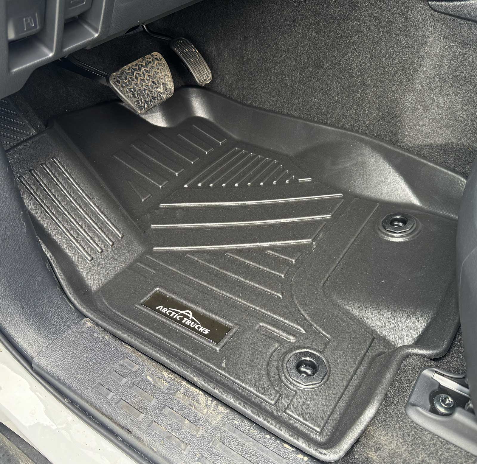 Mottusettið inniheldur mottur fyrir bæði ökumann og farþega að framan og aftan, og tryggir hámarksvörn gegn bleytu, sandi og drullu – fullkomið fyrir íslenskar aðstæður. Mottusettið smellpassar í gólf bílsins, með upphækkuðum köntum til að halda óhreinindum innan þeirra.
