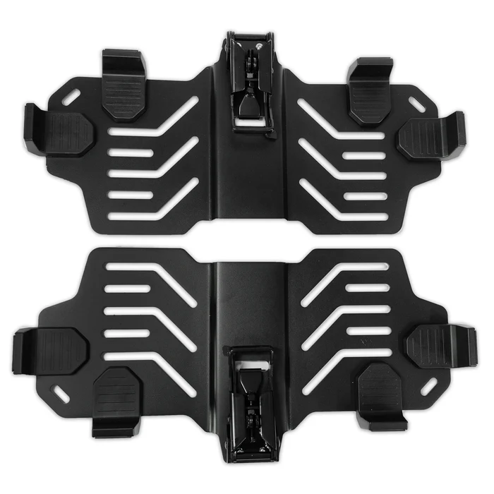 Quick Mount festing fyrir 83L geymslubox, fljótlegt uppsetningarkerfi hannað til að geta fest 128L geymslubox á þakgrindina eða annan flatan flöt á innan við 5 sekúndum. Með alhliða grunnplötuhönnuninni er hægt að festa geymsluboxið á nánast hvaða þakgrind eða flatan flöt sem er og gerir þér kleift að læsa geymsluboxið þitt niður til að koma í veg fyrir þjófnað.