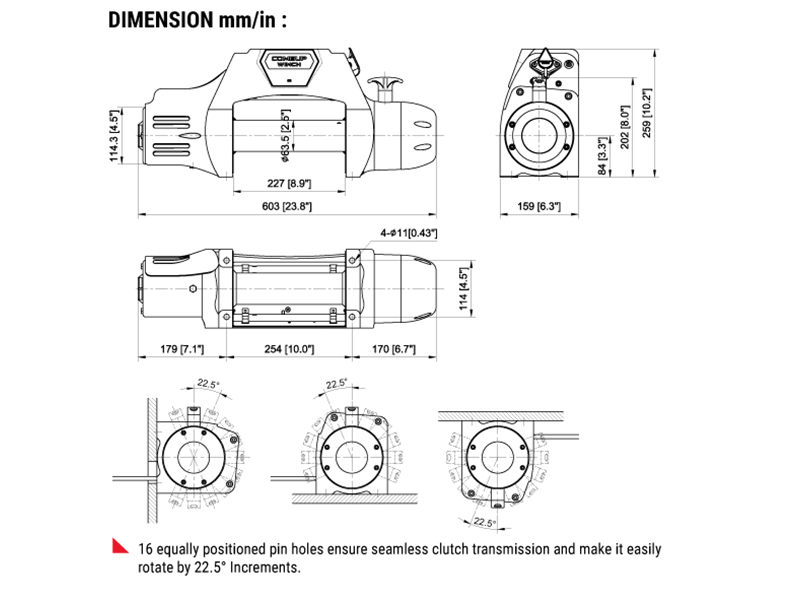 - Mounting bolt pattern: 254 mm x 114 mm (10” x 4.5”)