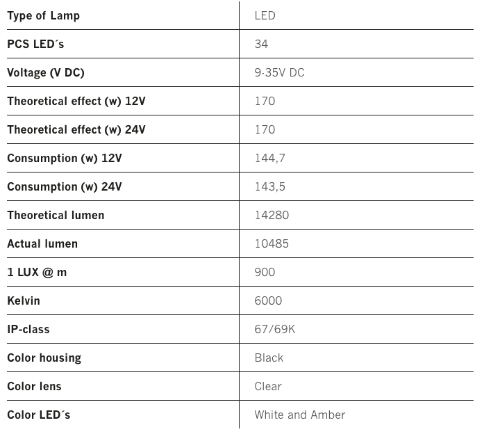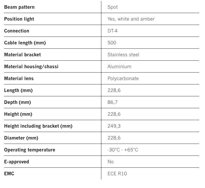 9″ kastari frá Strands sem gefur frá sér ótrúlegt ljósmagn. Spot geisli og 14280 lúmens gerir það að verkum að þú lýsir upp í allt að 1800 metra fjarlægð. Einn af flottustu kösturum á markaðnum í dag. Bæði hvítt og appelsínugult stöðuljós.