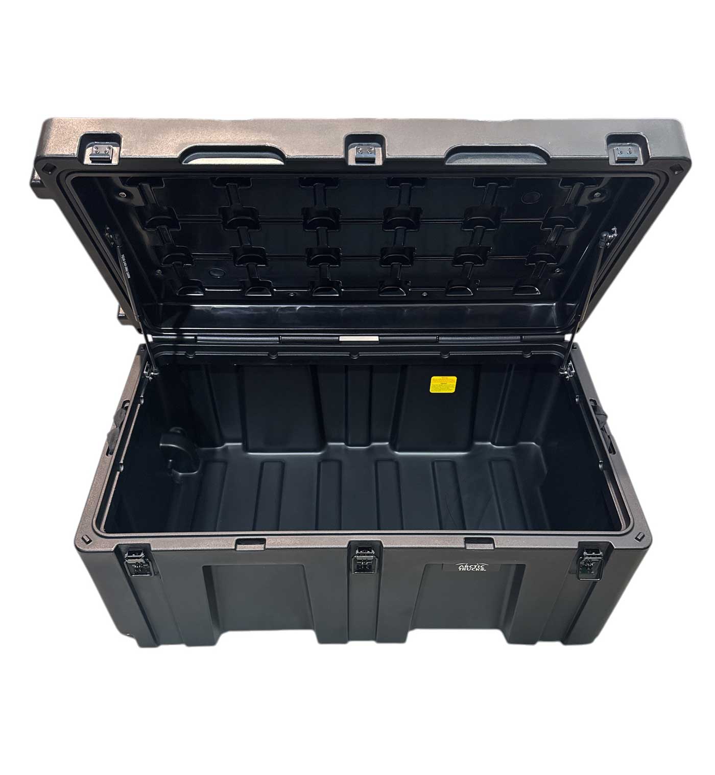 Vatnshelt 240 lítra mjög sterkbyggt geymslubox framleitt úr LLDPE skel sem kemur með 2x pumpum í loki, þéttingum fyrir vatnsheldni og læsingum gerðum fyrir hengilás ásamt hjólum og handfangi. Flatur botn sem auðveldar mjög stöflun og hentar mjög vel þegar boxin eru sett á toppgrindur eða aðra flata staði. Boxin eru með ryk-/vatnsheldri þéttingu sem tryggir að búnaðurinn þinn haldist alltaf verndaður, sama hvernig veður eða landslag er. Boxið kemur einnig með hjólum og handfangi til að draga það ásamt upptakara áföstum á hliðinni. Festingar í loki bjóða upp á möguleika á að setja molle panela eða töskur í lokið. Mjög sterkbyggð geymslubox sem þola töluverðan þunga ofan á sig, einnig eru úrtök í lokinu fyrir strappa til að auðvelda festu í boxin.