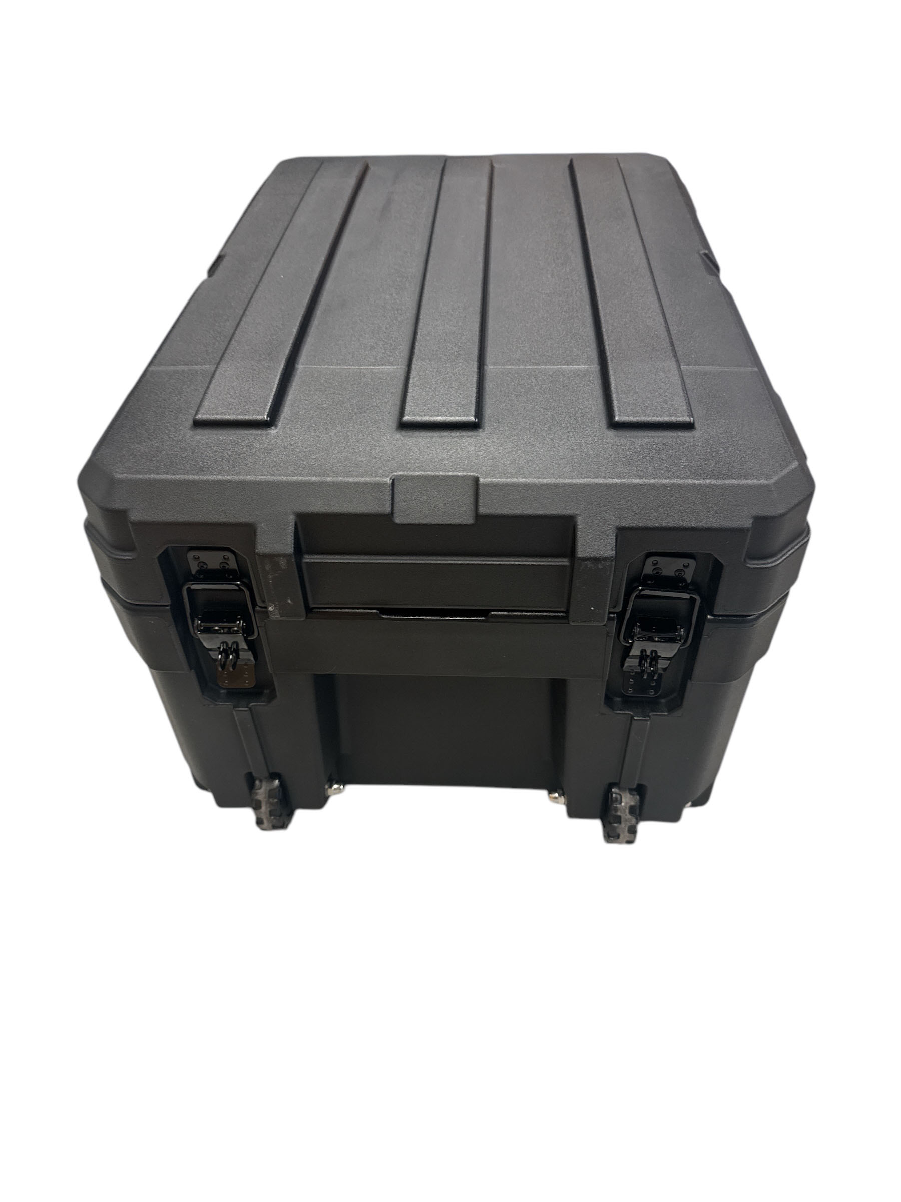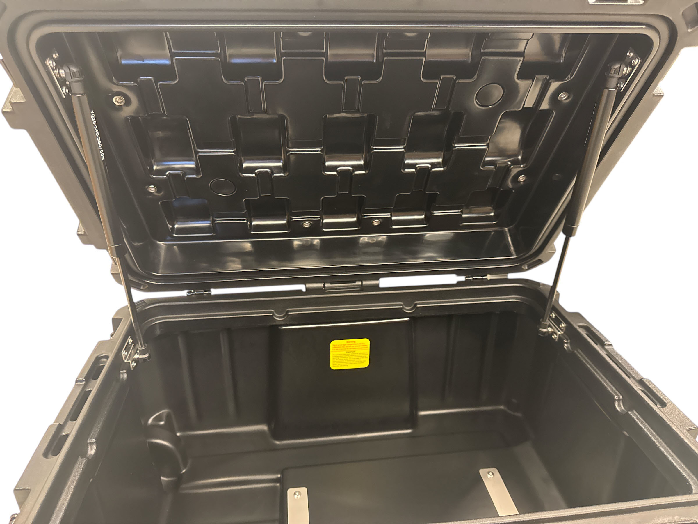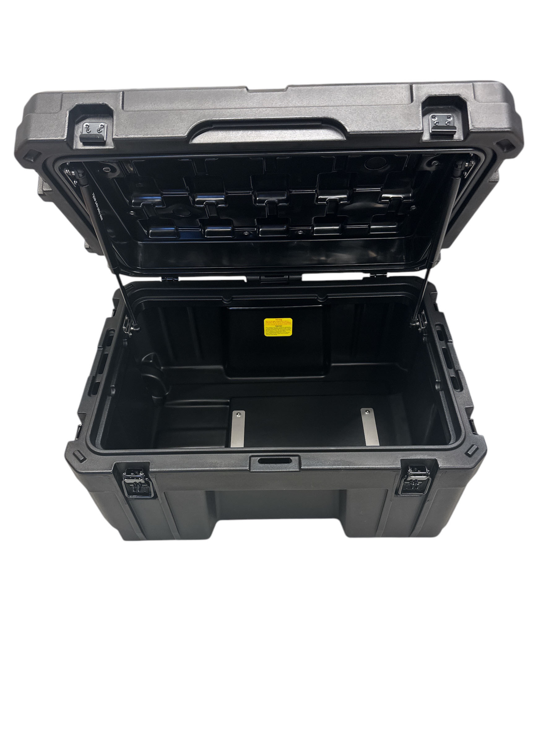 Vatnshelt 80 lítra mjög sterkbyggt geymslubox framleitt úr LLDPE skel sem kemur með 2x pumpum í loki, þéttingum fyrir vatnsheldni og læsingum gerðum fyrir hengilás ásamt hjólum og útdraganlegu handfangi. Flatur botn sem auðveldar mjög stöflun og hentar mjög vel þegar boxin eru sett á toppgrindur eða aðra flata staði. Boxin eru með ryk-/vatnsheldri þéttingu sem tryggir að búnaðurinn þinn haldist alltaf verndaður, sama hvernig veður eða landslag er. Boxið kemur einnig með hjólum og handfangi til að draga það ásamt upptakara áföstum á hliðinni. Festingar í loki bjóða upp á möguleika á að setja molle panela eða töskur í lokið. Mjög sterkbyggð geymslubox sem þola töluverðan þunga ofan á sig, einnig eru úrtök í lokinu fyrir strappa til að auðvelda festu í boxin.