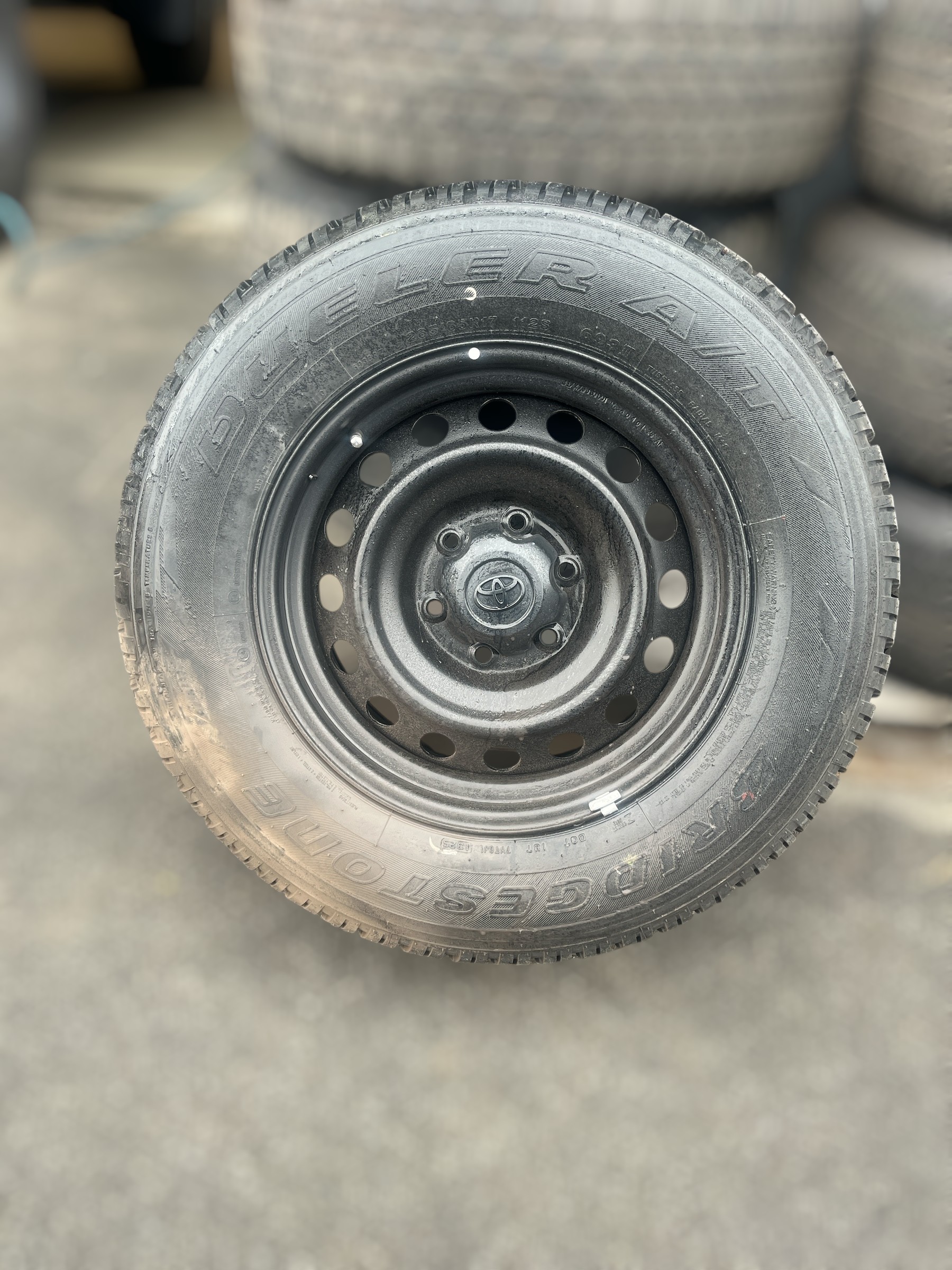 Einn gangur af Bridgestone Dueler 265/65R17 dekkjum á orginal Toyota felgum.